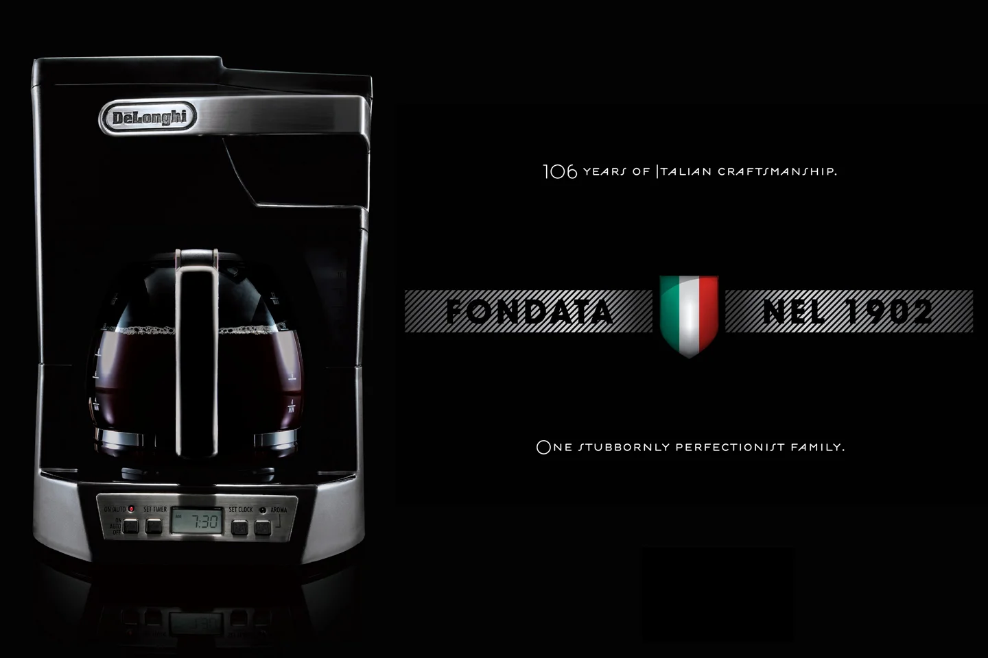 To re-launch the high-end Italian appliance brand De'Longhi a focus was placed on design, heritage and innovative features. A visual style was created for the brand with photography that highlighted the clean lines and minimal design of their products. The designers themselves were also brought to the forefront of the campaign to add emphasis on the importance of design across the brand's product lines. The brands new look was executed across print, out-of-home and digital campaigns, trade shows, and packaging. A new e-commerce website was created that allowed users to sort the varied product lines in a more intuitive way, while learning background stories about the design of the products, and the history of the brand.